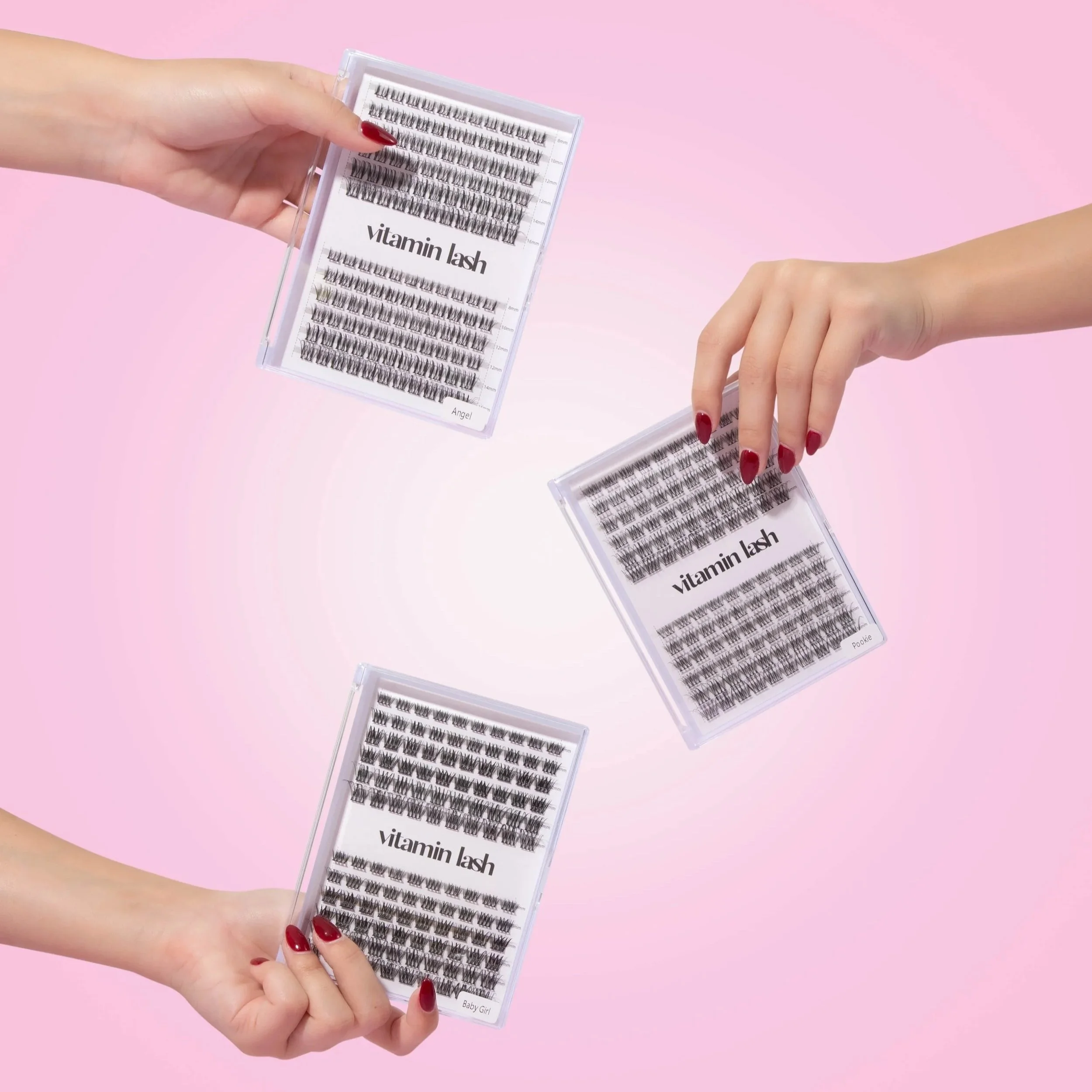 Limited stock remaining of our ultra-cute lash clusters, available in Angel, Baby Girl, and Pookie. Each set offers gorgeous, stackable volume and comes in varied lengths, letting you custom map your lashes and experiment with stunning new looks.